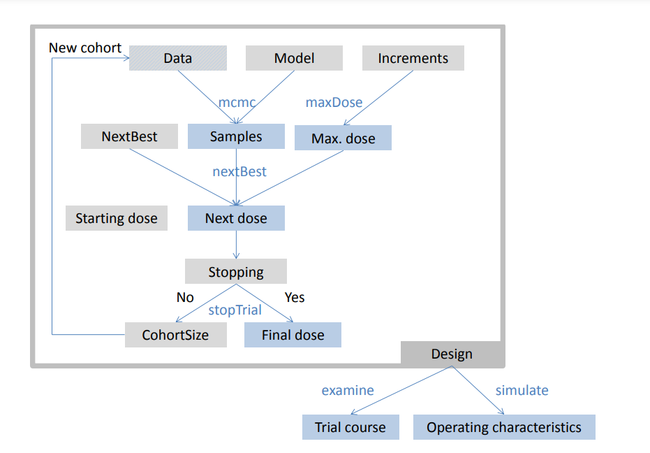 bcrm, blrm, dfcrm, OncoBayes2, …BOINescalationcrmPack:
